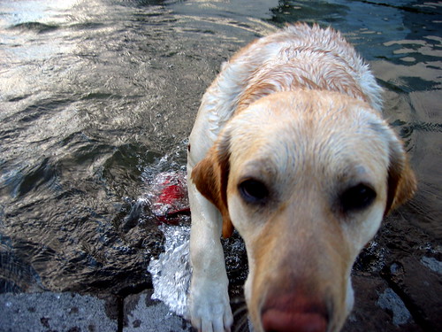 Just outside the entrance there is a small man-made pond and in the middle of it, this dog was walking around and appearing just as confused as me and his owner was.