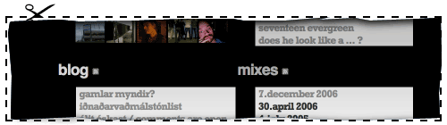 Svo, fyrir rúmlega ári, byrjaði ég að setja mín eigin video á bloggið. Um svipað leyti tók ég forsíðuna í meikover og sameinaði efnið þar (ljósmyndir, video, blogg, linka og fleira). Uppsetningin var einföld, en það vantaði þó heildarsvip og að lesandinn sæi strax eitthvað efni. Eða eins og félagi minn sagði, “þetta brýtur svolítið í bága við það sem maður er vanur”. Með þetta að leiðarljósi tók ég mig til og reyndi að finna meðalveginn.
